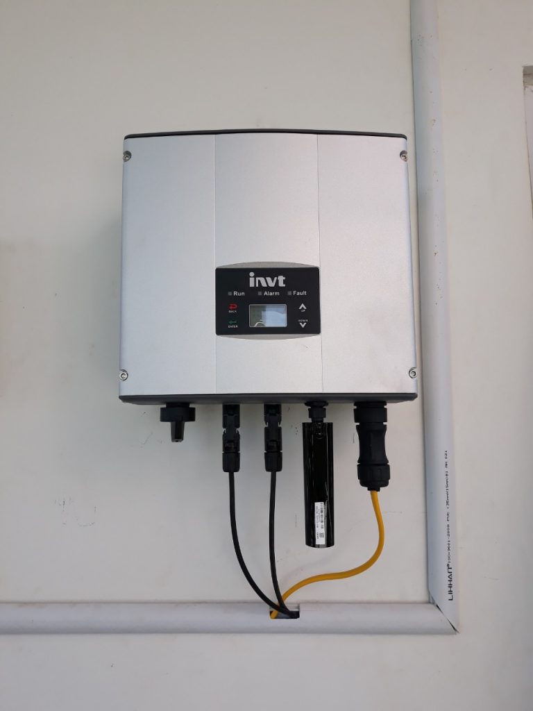 - Hệ thống lắp đặt gồm: 6 tấm pin x 330W và inverter INVT