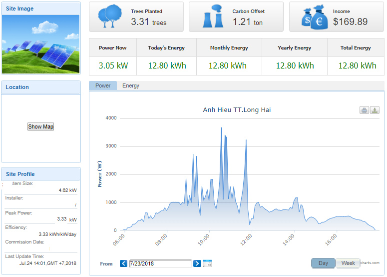 Solar CSC đã hoàn thành hệ thống điện năng lượng mặt trời hòa lưới 5KWp tại nhà anh Hiếu – gần chợ Long Hải, Vũng Tàu . Hệ thống giúp khách hàng giảm tiết kiệm điện tối đa mỗi tháng . Thành phố Vũng Tàu là một trong những địa điểm lắp đặt điện mặt trời cho công suất rất tốt tại Việt Nam. Theo thống kê bức xạ mặt trời để sinh ra điện, ở khu vực thành phố Vũng Tàu, sản lượng điện năng sinh ra 4.0 – 4.5 kwh/kWP/ngày. Hệ thống điện mặt trời sau khi lắp đặt đã phát ra năng lượng điện ổn định, công suất cao. Góp phần giảm chi phí điện năng cho Khách hàng, giảm nhiệt cho mái nhà và góp phần phát triển năng lượng sạch tại Việt Nam.